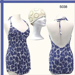 60er Jahre Badeanzug (Baumwolle, dehnbares Material), Schwimmhaube mit ausgeprägtem Blumenmotiv, ca. Gr. 38, ausgefallen