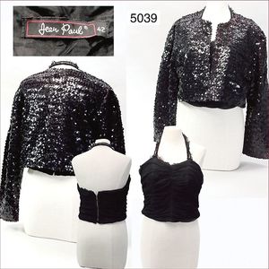 Pailletten-Jacke, Innenfutter Seide, A-Form, runder Kragen, leichte Keulenarme, ausgefallen, guter Zust., mit Corsage, ca. 50er Jahre, geraffter Tüll, innen mit Metall-Reißverschluss, ca. Gr. 38, Strass wohl nachträglich
