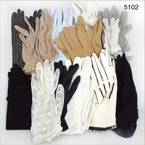Konv. Damen- bzw. Kinder-Handschuhe, ca. 1920 - 1950, teilw. Leder, hochwertig gearbeitet, für sehr schmale feine Finger, teilw. ausgefallene Spitze, ca. 15 Paare
