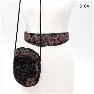 2 Teile, 1x Damengürtel mit prachtvollem Perlendekor, dazu Damenhandtasche, passend, 22 cm hoch, 17 cm breit, innen mit Magnetdruckknopf, Innenfutter schwarze Seide, 1 Tragekordel, unberührter Zust.