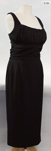 Gigi Young New York schwarzes Kleid der bekannten Schauspielerin Marilyn Monroe, aufgetaucht bei einer Spezialauktion des Haushaltes von Jon Barrymore, Hollywoodschauspieler, Großvater von Drew Barrymore, welcher mit Marilyn Monroe liiert war, nach dem Tode von Jon Barrymore wurde der Nachlass in Amerika versteigert, eine Expertise des Auktionshauses liegt vor, Satin-Kleid, eckiger Ausschnitt, an der Brust gerafft, (eng genäht) knielang, Hersteller Gigi Young, Metallreißverschluss an der Rückseite, ca. Gr. 40, Innenfutter Seide?, kurzärmelig,