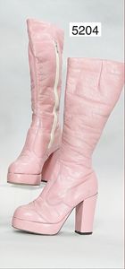 Stiefel, 60er Jahre, Kunstleder, rosa, Kunststoff-Reißverschluss, hoher Plateau Absatz, runde Form, innen Stoff, Gr. 37-38