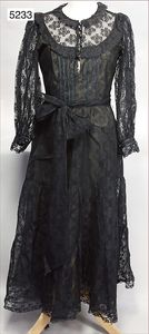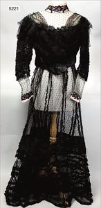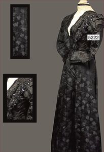 Damenkleid, ca. 1880, 2-tlg., Paris, Rene Bonnel, schwarz, mit Pailletten und Perlen bestickt, Spitzeneinsatz beige, Stehkragen, alte Hakenverschlüsse, mit Knopfreihen verziert, ausgefallen, sehr schöner Orig.-Zust., geeignet als Deko-Stück für Museen