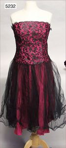 VERA MONT Damen-Cocktailkleid, fuchsia, Taft, schwarze Spitze, hinten mit Plastik-Reißverschluss, ärmellos, Rock 4-lagig, ca. Gr. 38