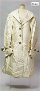 Swears & Swells Regent Street Kinderjacke, Rokoko?, beigefarben, feines Blumendekor, Seide, ausgefallene Knöpfe an den Ärmeln sowie Kragen und Rückenseite, tailliert, lang geschnitten, Manschettenknöpfe, hinten mittig Schlitz, ausgefallen, sehr schöner Orig.-Zust.