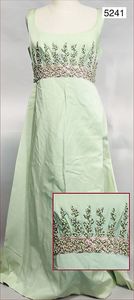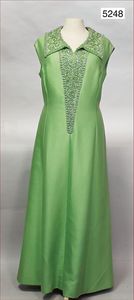 Damenkleid (Abendkleid), lindgrün, prachtvoll mit Perlen bestickt, ca. 1940, ca. Gr. 40, mit Hakenverschlüssen, Seide, Metall-Reißverschluss hinten, bodenlang, Innenfutter Seide, schöner Orig.-Zust.