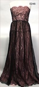 Abendkleid, 50er Jahre, zartes rosa mit schwarzer Spitze, ärmellos, hinten Metall-Reißverschluss, bodenlang, Satin/Seide altersbedingt etwas verfleckt, 27 cm Durchmesser der Taille, 1,20 m lang, ausgefallen
