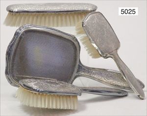 Konv. 3 Silber-Bürsten, filigranes Muster, 1 Spiegel, altes Glas, beschlagen, 25 cm, ausgefallen