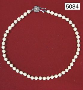 Damn-Perlenhalskette, Verschluss floral gearbeitet, gepunzt 835, 41 cm, Perlen in der gleichen Größe