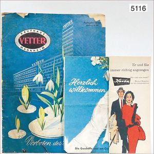 Katalog Kaufhaus Vetter, Mannheim, 1956, Katalog Nr. 561, mit Mobiliar, Porzellan, Kleidung, Accessoires, schwarz-weiß, sowie farbige Bilder, Zust. 3, Der kleine Mode-Ratgeber vom Kaufhaus Hanser am Paradeplatz, ausgefallen