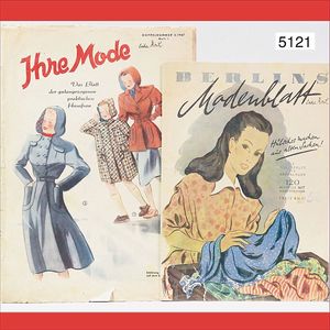 Konv. 2 Zeitschriften, 1x Ihre Mode unterschrieben von Erica Koih, dazu Zeitschrift Berlin´s Modeblatt, 120 Modelle mit Schnittmuster, mit versch. schwarz/weiß Darstellungen, unterschiedlicher Mode Stile, sowie Werbungen namhafter Hersteller, ausgefallen