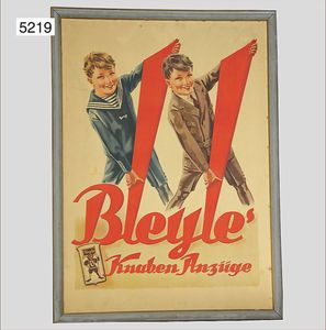 BLEYLE Knabenanzüge, Pappe-Werbeschild, Druck im Rahmen, 73 cm hoch, 54 cm breit, mit Orig.-Papieraufdruck der Willi Bleyle GmbH Stuttgart, ausgefallen, schöner Orig.-Zust.