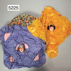 ca. 1930 Seidenkissen-Bezüge mit mittigem Pappmaché-Damengesicht, gem. Augen, gem. Mund, ausgeprägte feine Nase, mit seitl. Mohairansatz., im Orig.-Kart.