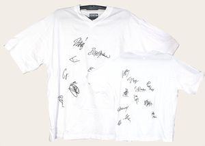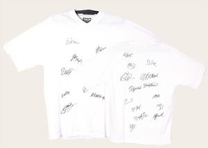Tennis-Shirt mit Unterschriften weiblicher Tennisspielerinnen, Hantuchova, Vesnia Nali, Schiacone, Stoffner, Per, Petrova, Henin Chuznetzova, 23 Unterschriften aus dem Teilnehmer Feld eines Tennisturnier