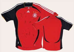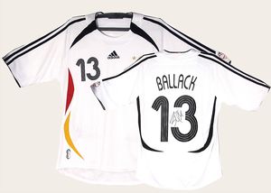 Nationalmannschafts Triko des Fußballers, Michael Ballack, Nr. 13, mit Orig.-Unterschrift, ehemaliger deutscher Fußballspieler, er war langjähriger Mannschaftskapitän der deutschen Nationalmannschaft und der torgefährlichste Mittelfeldspieler, der je in einer deutschen Auswahl gespielt hat.