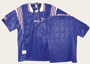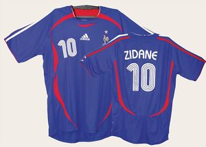 Nationalmannschafts Triko des französischen Fußballers Zinédine Zidane, Nr. 10, mit Orig.-Unterschrift, beim Titelgewinn der französischen Nationalmannschaft bei der Weltmeisterschaft im eigenen Land war Zidane 1998 trotz einer Rotsperre, die ihm die Teilnahme am 3. Gruppenspiel und am Achtelfinale verwehrte, der Kopf der französischen Mannschaft. Im Endspiel gegen Brasilien sorgte Zidane mit zwei Kopfballtoren für die 2:0-Halbzeitführung, welches schlussendlich mit 3:0 gewonnen wurde und somit Frankreich erstmals Weltmeister war.