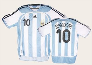Argentinisches Nationalmannschafts Triko, mit Orig.-Unterschrift von dem ehemaligen Fußballspieler Diego Maradona, Nr. 10, er spielte bei vier Weltmeisterschafts-Endrunden (1982, 1986, 1990, 1994) und wurde mit Argentinien 1986 Weltmeister und 1990 Vize-Weltmeister. Im Vereinsfußball feierte er seine größten Erfolge mit den Boca Juniors und dem SSC Neapel in Italien (u. a. Meister 1987, 1990). Maradona gilt als einer der besten Fußballspieler der Geschichte