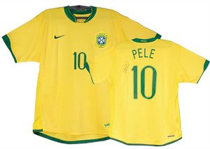 Nationalmannschafts Triko des brasilianischen Fußballers, Graziano Pele, Nr.10, mit Orig.-Unterschrift, in der Saison 2003/04 schaffte er den Sprung in den Profikader.