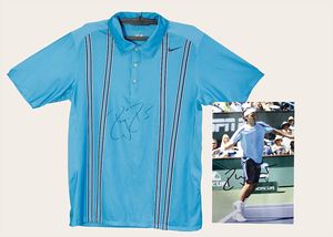 Roger Federer ist ein schweizer Tennisspieler, Mütze mit Orig.-Unterschrift, dazu Foto mit Orig.-Unterschrift und Triko, in seiner bisherigen Karriere konnte Federer die Rekordanzahl von 17 Grand-Slam-Turnieren im Einzel gewinnen und beendete die Jahre 2004, 2005, 2006, 2007 und 2009 an der Spitze der Tennis-Weltrangliste. Insgesamt gewann Federer bisher 76 Titel im Einzel sowie 8 im Doppel