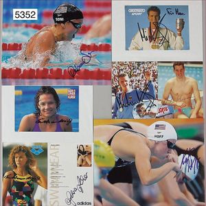 Unterschriften von bekannten Schwimmer, dt. Schwimmerinnen Sandra Völker, sowie Franziska von Almsick, Rebecca Soni, US-amerikanischer Schwimmerin, Katie Hoff, US-amerikanischer Schwimmerin, u.a.