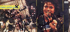 Zeitungsausschnitt auf Pappe geklebt, mit Orig.-Unterschrift von Michael Jackson, ca. Anfang der 80er Jahre