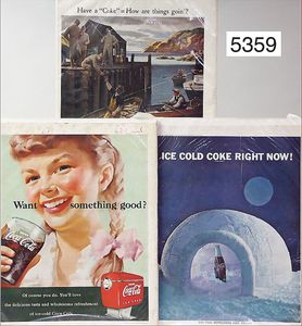Konv. Papp-Werbeschilder für Coca-Cola, gestempelt Mr. & Mrs. Howard Risley Dallas Pennsylvania, ausgefallen
