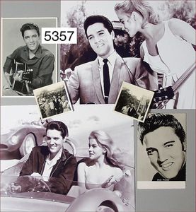 Konv. Elvis Presley, Abzüge von s/w-Fotos, u.a. 2 Autogrammkarten, 2 gr. s/w-Fotografien mit blonder US-Schauspielerin, dazu 2 Orig.-Aufnahmen während seiner Stationierung in Deutschland, ausgefallen, bitte besichtigen, schönes Konv.