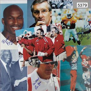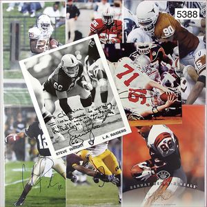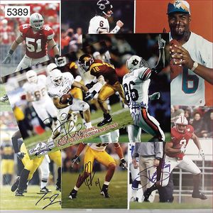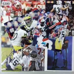 Konv. Autogramme von bekannten Footballspielern, z.B. Boyd Dowler, 1959-71, Andy Robustelli, Spieler der New York Giants, Bret Bielema, American Football Coach; Ron Zook, American Football Coach, Mike Rozier, Donte Stallworth, Orig.-Unterschriften