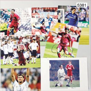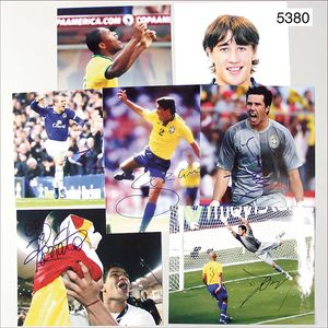 Konv. 7 unterschriebene Fotografien von Fußballern, z.B. A. Marangon (Doni), brasilisanischer Torhüter, Jorginho, brasilianischer Fußballspieler, Bojan Krkic, serbisch-spanischer Fußballspieler bei FC Barcelona, Phil Neville bei FC Everton, Renato Dirnei Florencino bei FC Sevilla, u.a. Orig.-Unterschriften