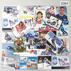 43 Autogrammkarten, Orig.-Unterschriften, Skispringer und Bobfahrer, u.a. Klaus Heidegger, Dennis Carbon, Bernd Krochewski, Aline Bonjour, Marder Günther, Patrick Ortlieb, Paolo De Cisa, Bobfahrer Enrico Kühn, Eislauf Marianne Timmer, schönes Konv.