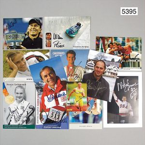 Autogrammkarten für Olympia-Sieger, u.a. Dietmar Koszewski, Ilse Heylen, Bianca Kappler, Weitsprung, Erich Scherer und Max Rüegg, Karl Schranz, Darren Campbell MBA, u.a. Sonia Lehmann, mit Orig.-Unterschriften