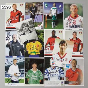 Konv. Autogrammkarten, Fotografien von Fußballern, u.a. Khalid Boulahrouz, niederländ. Fußballspieler, Paul Hartney, Claudio Lopez, argentinischer Fußballspieler, sowie Nuno Valente, protugisischer Fußballspieler; Orig.-Unterschriften