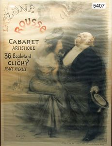Zirkusplakat Frankreich 1904, "La Lune Rousse Cabaret Artistique 36 Boulevard de clichy pigalle" sign. Affiches Artispiques e TAB TS MINOT Paris Sté de la g. de Inp. Art. que etablis. ts minot, 34, Rue des Martyrs Paris, Künstler Charles Lucien Leandre (1862-1934), Breite 105, 1,40 cm hoch, schöner Orig.-Zust., Orig.-Lithogr., ausgefallen