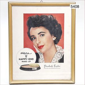 Werbeplakat mit Elizabeth Taylor, Metro-Goldwyn-Mayer für Ritz Köln, Happy-End Make-Up, 31 cm hoch, 25 cm breit, schöner Zust.