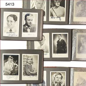 Fotoalbum mit Autogramme, schwarz-weiss Bilder mit Unterschriften von Schauspielern wie Lilian Harvey, Magda Schneider, Renate Müller, Brigitte Horney, Gina Falkenberg, u.a. männliche Schauspieler wie Fritz Odmar, Karl-Ludwig Diehl, Heinz Rühmann, Gustav Dissel und Harry Piel und vieles mehr, schöner Zust.