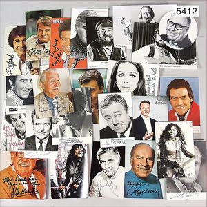 Konv. Autogramme, Schauspieler, u.a. Ludwig Erdmanski, Hans Söhnker, Georg Thomalla, Joachim Fuchsberger, Inge Meysel, Roy Black, Roberto Blanco, Karl Dall, Jürgen von der Lippe, vieles mehr, bitte besichtigen
