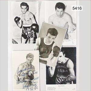 4 unterschriebene Autogrammkarten, Boxer u.a. R. Coan, 1986, Hector Macho mit Orig.-Unterschrift, dazu Conny Rudhoff, unterschrieben mit den besten Wünschen 07.08.61, dazu Horst Rascher, Europa-Meister 1959, 9 facher dt. Meister, 1x Wilhelm Huepner, mit Orig.-Unterschrift, 17.11.61, ausgefallen