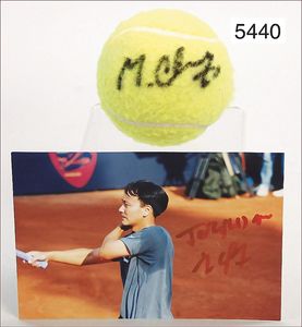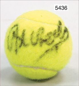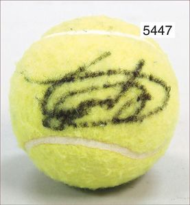 Tennisball mit Orig.-Unterschrift von Amélie Mauresmo, ehemalige französische Profi-Tennisspielerin. Ihren ersten Turniersieg errang sie im Jahr 1999. Einen ersten großen Erfolg mit der Mannschaft feierte sie 2003, als sie mit dem französischen Team den Fed Cup gewann