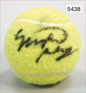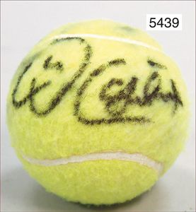 Tennisball mit Orig.-Unterschrift von Matina Hingis, ehemalige Tennisspielerin aus der Schweiz, sie war 209 Wochen lang Weltranglisten Erste und gewann fünf Grand-Slam-Turniere im Einzel