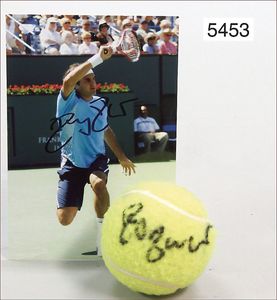Tennisspieler Roger Federer, Tennisball, mit Orig.-Unterschrift, dazu Autogrammkarte mit Unterschrift