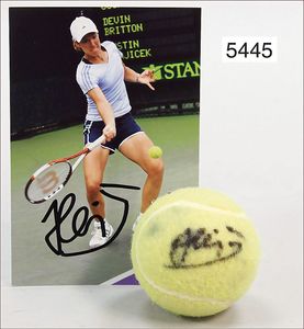 Tennisball mit Orig.-Unterschrift von Justine Henin, ehemalige belgische Tennisspielerin. Ihre größten sportlichen Erfolge waren der Gewinn von sieben Grand-Slam-Titeln im Einzel, sowie der Goldmedaille bei den Olympischen Spielen
