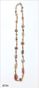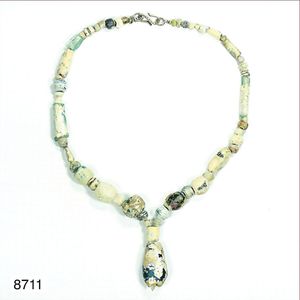 Glasperlenkette ( Hebronperlen ), Herstellung 12.-18. Jhdt., Mittelteil alter weißer Achat, 48 cm