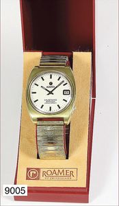 Herren Armbanduhr, ROAMER Mustang Rotodate Indianapolis, Flexband, Automatik, Datumsanzeige, Double, guter Zustand, original Schatulle