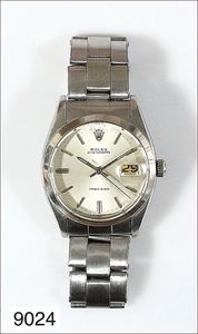 Herrenarmbanduhr, ROLEX, Stahl, Handaufzug, verschraubte Krone, rot/schwarzes Datum unter Lupe, Stahlband mit Faltschließe, ca. 1970