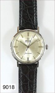 Herrenarmbanduhr, OMEGA, Edelstahl mit Lederband, Automatik Cal. 552,70-80er, (letzte Revision 10/10), guter Zustand