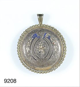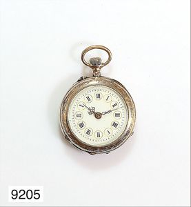 Damentaschenuhr , GG 585/000, als Anhänger umgearbeitet, Rückseite feine Gravur, Uhr läuft (reinigungsbedürftig)