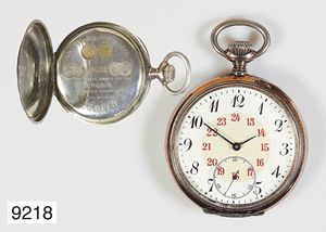 Taschenuhr, ZENITH, Grand Prix Paris 1900,Silber 800/000, um 1900, Rückdeckel mit Guilloche, Wappengravur, Ränder vergoldet, Ankerhemmung, Glas leichter Sprung, Zeiger sekundär, Uhr läuft