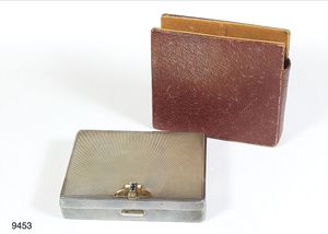 Puderdose,BLACK,STAR & GORHAM STERLING 14 k (gepunzt), Amerikanisches Art-Deco,14 k Goldverziehrung mit 3 Princess Saphieren,original Lederetuit, ca 80 g