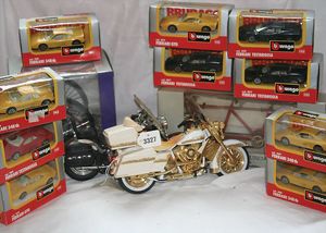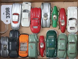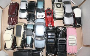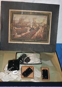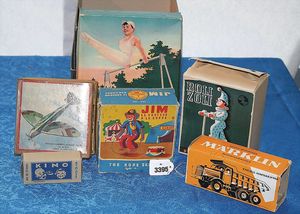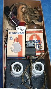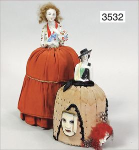 Konv. Damen-Abendhandtaschen, feine perlenbestickte Damentasche, goldener Bügel, innen cognacfarbene Seide, Seitentasche, 1 Kettentrageriemen wohl neuer, 17 cm hoch, 17 cm breit, unberührter Zust., dazu silberne Abendtasche, Kettenstoff, Innenfutter weiße Seide, dazu passendes Portemonnaie, Seitentasche 16 cm hoch, 15 cm breit, Metall-Trageriemen, dazu kleine Biedermeier-Beuteltasche, Messingblech vergoldeter Verschluss, florales Muster auf dem Deckel, schwarzer Lederbeutel, minim. verschlissen, ausgefallen, 11 cm hoch, dazu 1 Paar schwarze Seidenhandschuhe, schönes Konv.