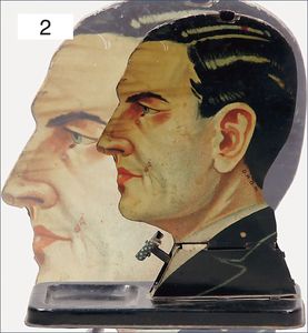 KELLERMANN Zigarettenspender, Blech lithogr., Herrenbüste, deutsch, Vorkrieg, 17 cm hoch, guter Zust., ausgefallen